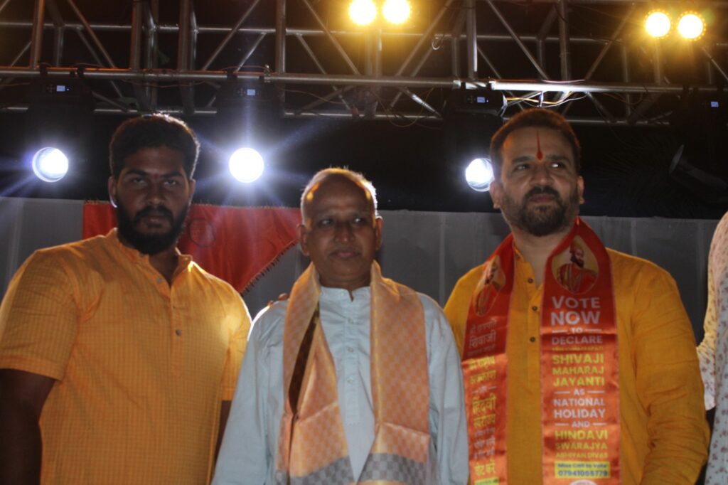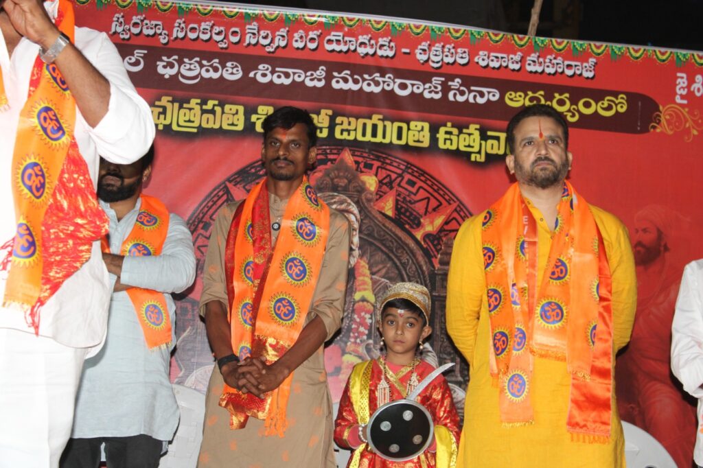 In Kothapet, a large public assembly came together to honor the occasion. Floral tributes were offered, followed by inspiring speeches focusing on Shivaji Maharaj’s military strategy, governance model, and dedication to protecting his people.